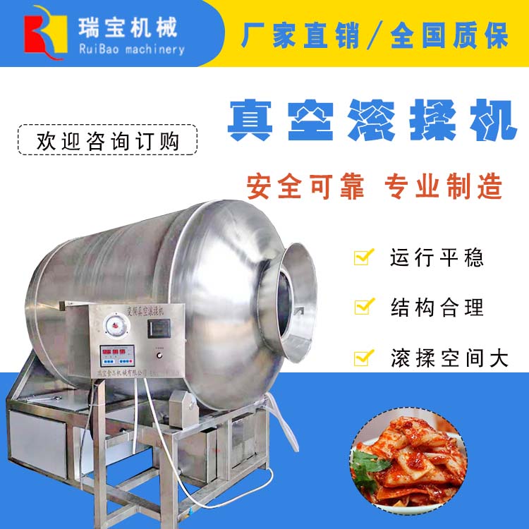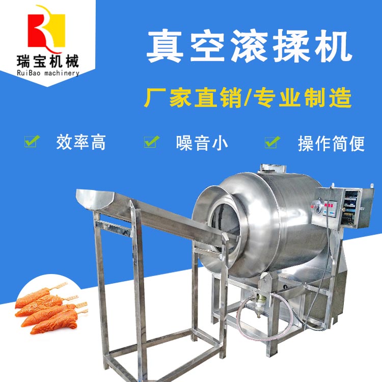 3、內(nèi)置式真空泵,配置多重空氣過(guò)濾裝置,有效防止物料抽入真空泵和外界雜物進(jìn)入滾桶內(nèi)部,避免肉類制品受到污染。