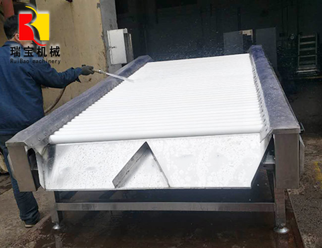 大蒜擦干機(jī)是利用減速機(jī)帶動(dòng)鏈條拉動(dòng)吸水輥使其均勻轉(zhuǎn)動(dòng),是清洗消毒后的蒜米在經(jīng)過海綿輥的同時(shí)水分也被吸干,達(dá)到不傷蒜米表面光潔亮度。擦干機(jī)具有自動(dòng)擠水和自動(dòng)消毒的功能。采用間歇式擠水方法,間歇時(shí)間和擠水時(shí)間可自動(dòng)調(diào)節(jié)。