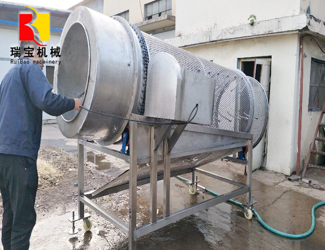 滾筒清洗機從機械結構上來說,這類清洗機的主體滾筒,其轉動可以使?jié)L筒內(nèi)的物料自動翻滾。互相摩擦與筒壁發(fā)生摩擦作用,從而使表面污物剝離。但這些作用只是能把產(chǎn)品上的雜物、水分瀝干。